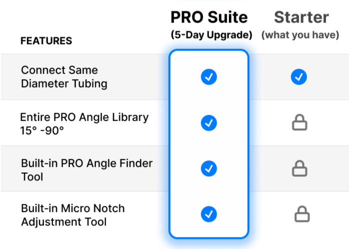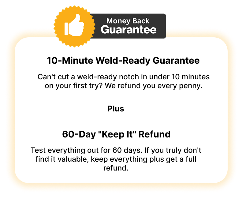 Note: The Tube Notching Blackbook was a one‑time bonus on the page right after your grabbed your starter kit and is not included with this 5-day upgrade window.
